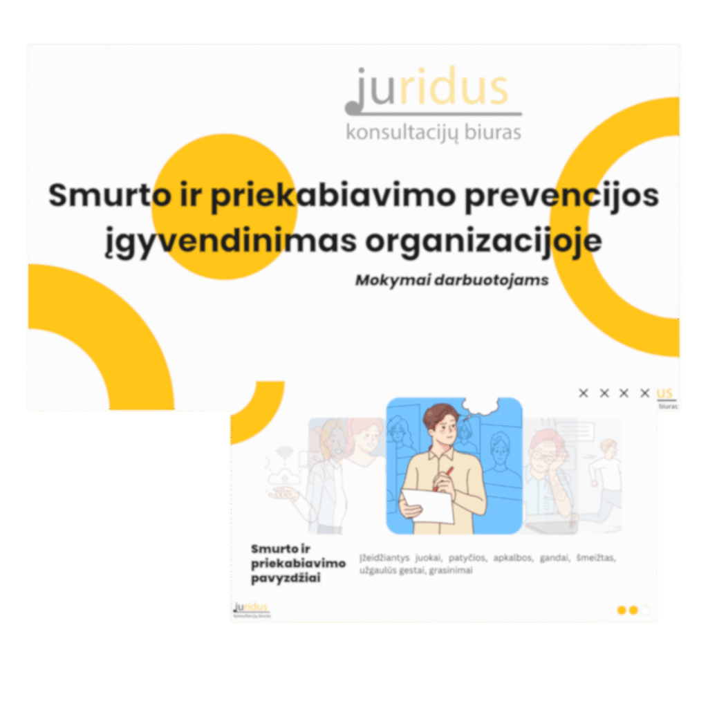 ✅ Įsigyti visą darbo teisės ir vidaus dokumentų paketą, padedantį tinkamai įgyvendinti prevenciją organizacijoje.